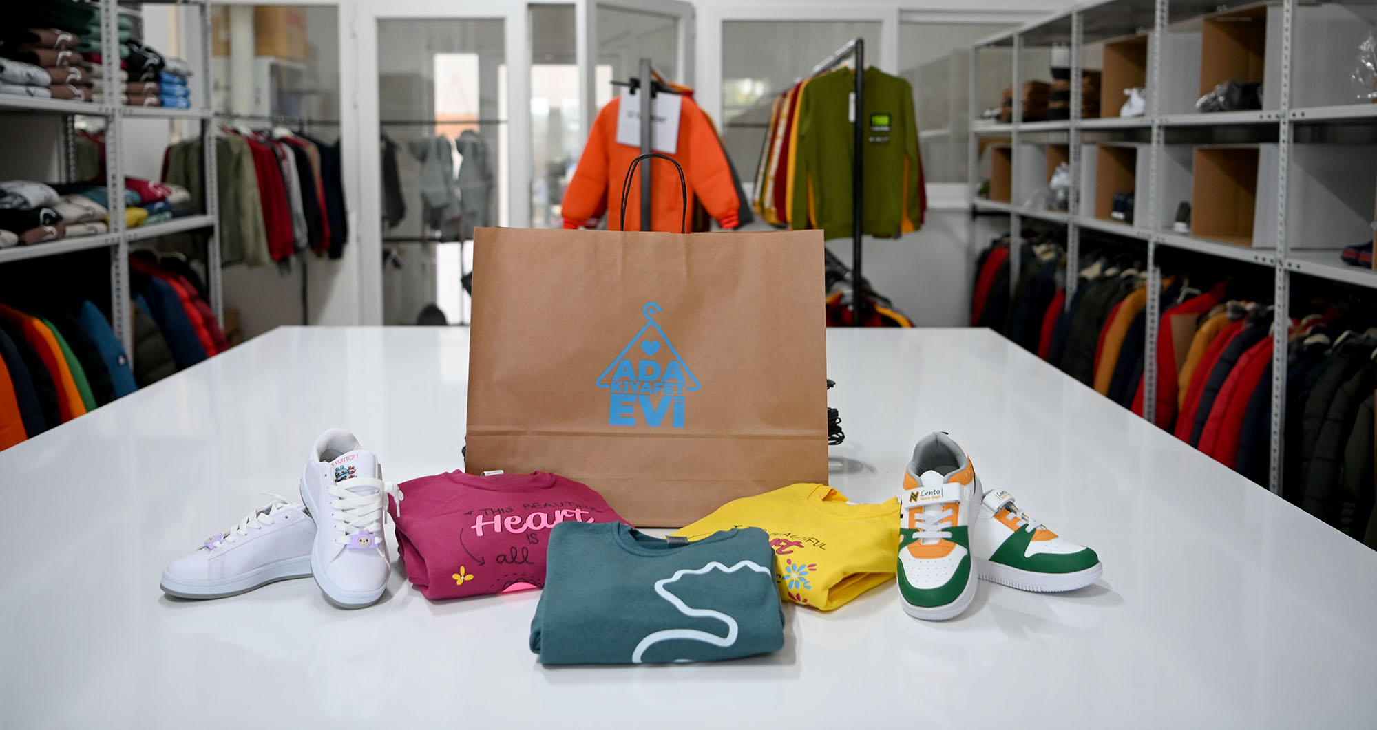Ada Kıyafet Evi'nde yer alan hiç kullanılmamış giysiler ise bağışçılar tarafından sağlanıyor.