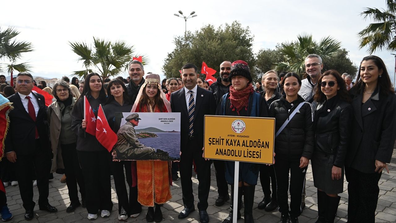 Törende, Kuşadası Kaymakamı İbrahim Keklik, Kuşadası Garnizon Komutanı Personel Albay Metin Şimşek ve Kuşadası Belediye Başkanı Ömer Günel tarafından Atatürk heykeline çelenk sunuldu. Saygı duruşunda bulunulup, İstiklal Marşı’nın okunmasıyla devam eden törende, Şehit Kaya Aldoğan Anadolu Lisesi öğrencileri günün anlam ve önemini belirten konuşmayı yapıp şiirler okudu. Kuşadası Belediyesi Halk Dansları Akademisi’nin (KUŞADANS) ve Şehit Kaya Aldoğan Anadolu Lisesi öğrencilerinin sergilediği çeşitli halk oyunları gösterileri de beğeni topladı.