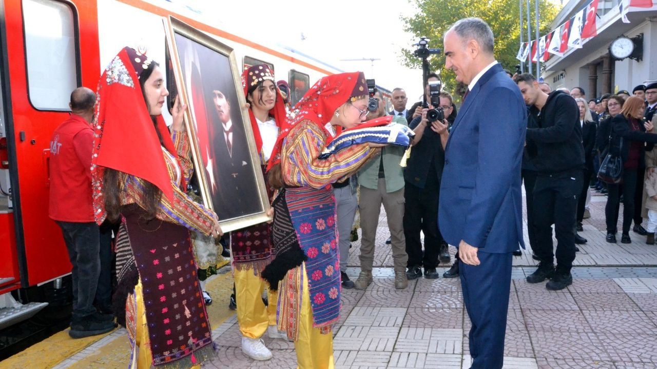 Kutlama programı, Manisa Tren Garı’nda temsili karşılama töreniyle başladı. Tren garına gelen Türk Bayrağı, öğrenciler tarafından Vali Vahdettin Özkan’a takdim edildi. Halk oyunları ekibi ise zeybek gösterisiyle etkinliğe renk kattı.