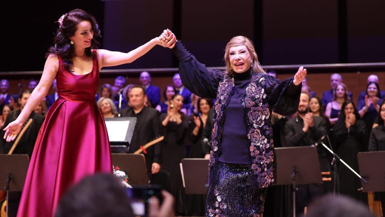 Türk Halk Müziği’nin efsane ismi 84 yaşındaki Bedia Akartürk, İzmir Büyükşehir Belediyesi Türk Halk Müziği Korosu’nun Ahmed Adnan Saygun Sanat Merkezi'nde verdiği konserde konuklara sürpriz yaptı