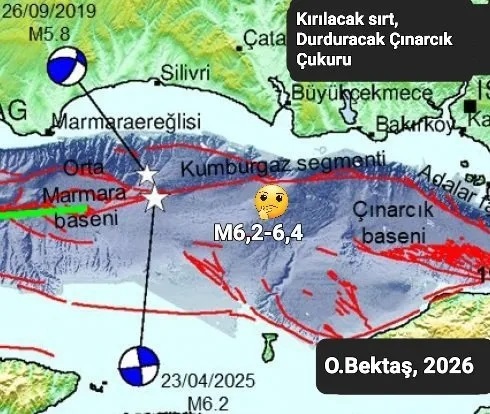 Bektaş, "Kumburgaz çukuru altında 6 metre büyüklüğünde bir deformasyon varsa bu İzmit'teki 7.4 büyüklüğünden daha da büyük bir deprem demektir. Ben burada 6 metrelik bir deformasyonun birikemeyeceğini, fayın bu deformasyonu harcadığını söylüyorum" diyerek tezini açıklamıştı.