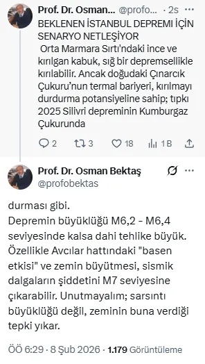 Bektaş bu sabah sosyal medya hesabından yeni bir paylaşım yaparak beklenen İstanbul depremi için senaryonun netleştiğini söyledi.