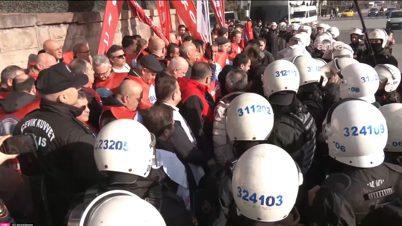 Ancak Birleşik Kamu-İş Konfederasyonu üyelerinin TBMM Dikmen Kapısı’nda yapmak istediği açıklamaya polis ekipleri izin vermedi. Açıklama yapmak isteyen sendika üyelerinin etrafı güvenlik güçleri tarafından çevrilerek alan polis çemberine alındı.