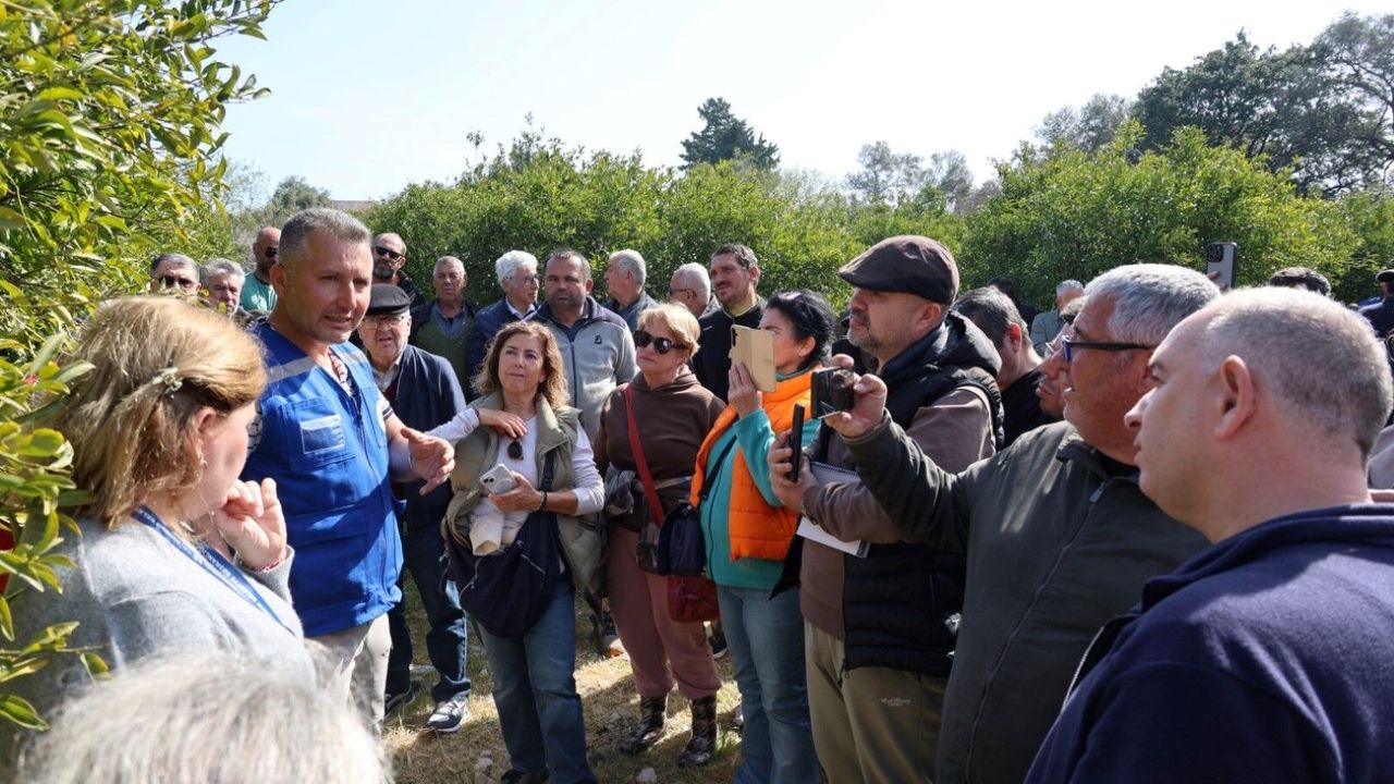 Ziraat mühendisi ve teknik personeller tarafından katılımcılara uygulamalı olarak ağaç budama eğitimi verilirken Akdeniz Meyve Sineği Biyolojik Tuzakları ile ilgili de bilgilendirmeler yapıldı.