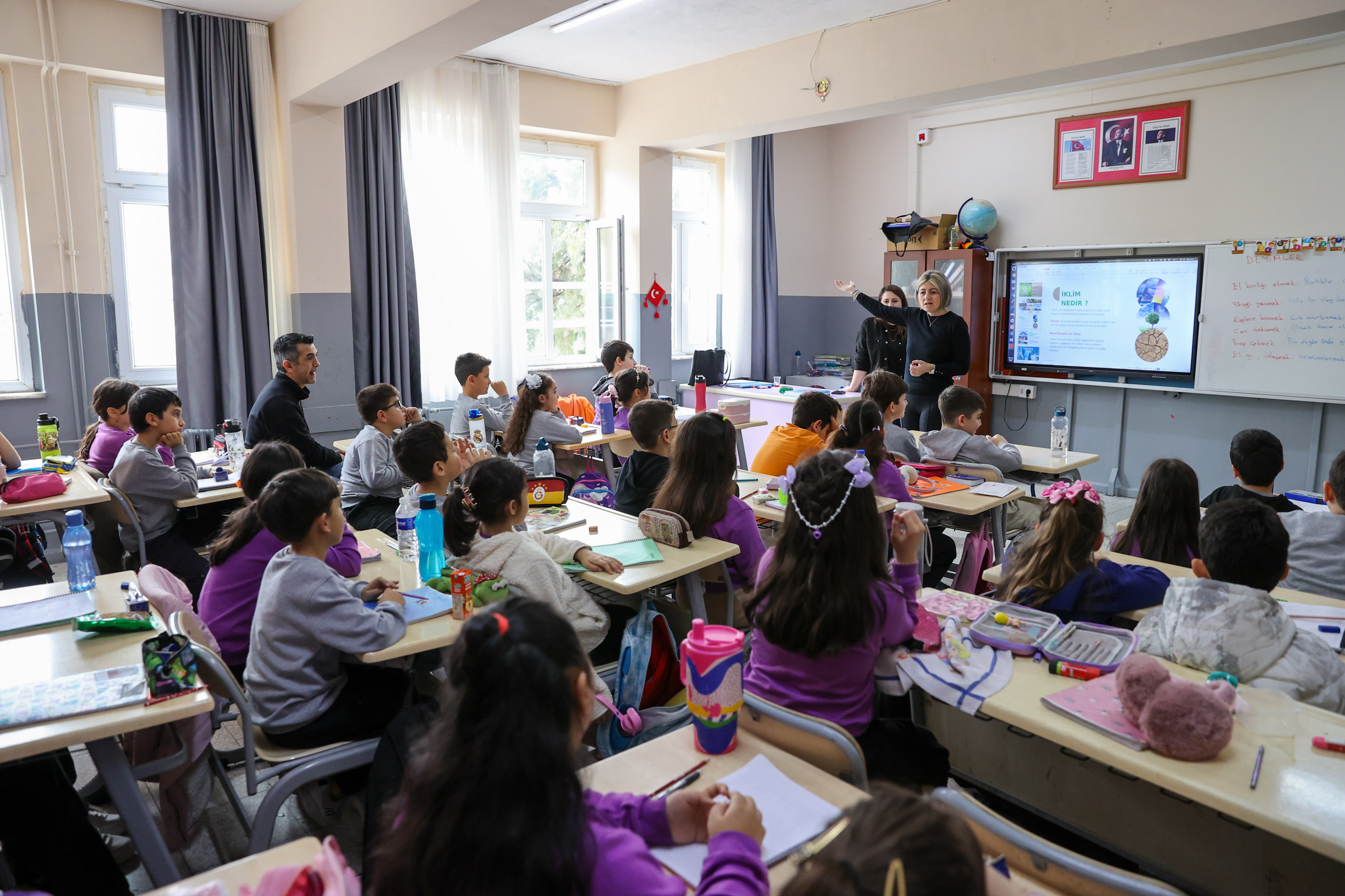 Buca Belediyesi'nin İlçe Milli Eğitim Müdürlüğü ile imzaladığı protokol kapsamında ilçedeki ilkokullarda düzenlediği "İklim Değişikliği ve Sıfır Atık" eğitimi bu kez Gaziler Mahallesi'nde bulunan Akşemsettin İlkokulu'nda gerçekleşti.