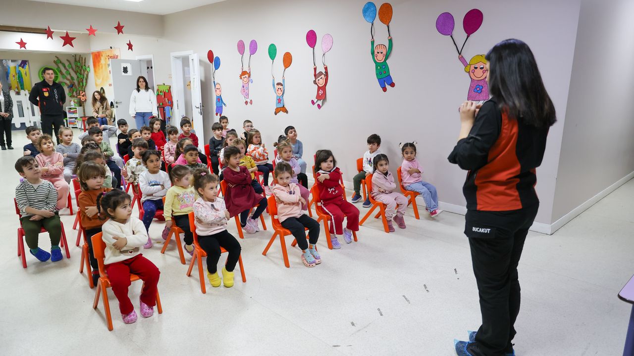Buca Belediyesi Arama Kurtarma Birimi (BUCAKUT), Çınar Anaokullarında, çocukların dünyasına uygun yaratıcı bir atölye çalışmasıyla afet eğitimi verdi. Minikler, öğretmenleri ve ekipler eşliğinde yapı oyuncaklarıyla güvenli evler inşa etti; sağlam binaların önemini oyunla kavradı. Eğitim kapsamında hazırlanan kısa film gösteriminin ardından deprem tatbikatı yapıldı. Çocuklar, deprem anında uygulanması gereken “çök-kapan-tutun” hareketini ve güvenli tahliye yöntemlerini uygulamalı olarak öğrendi.