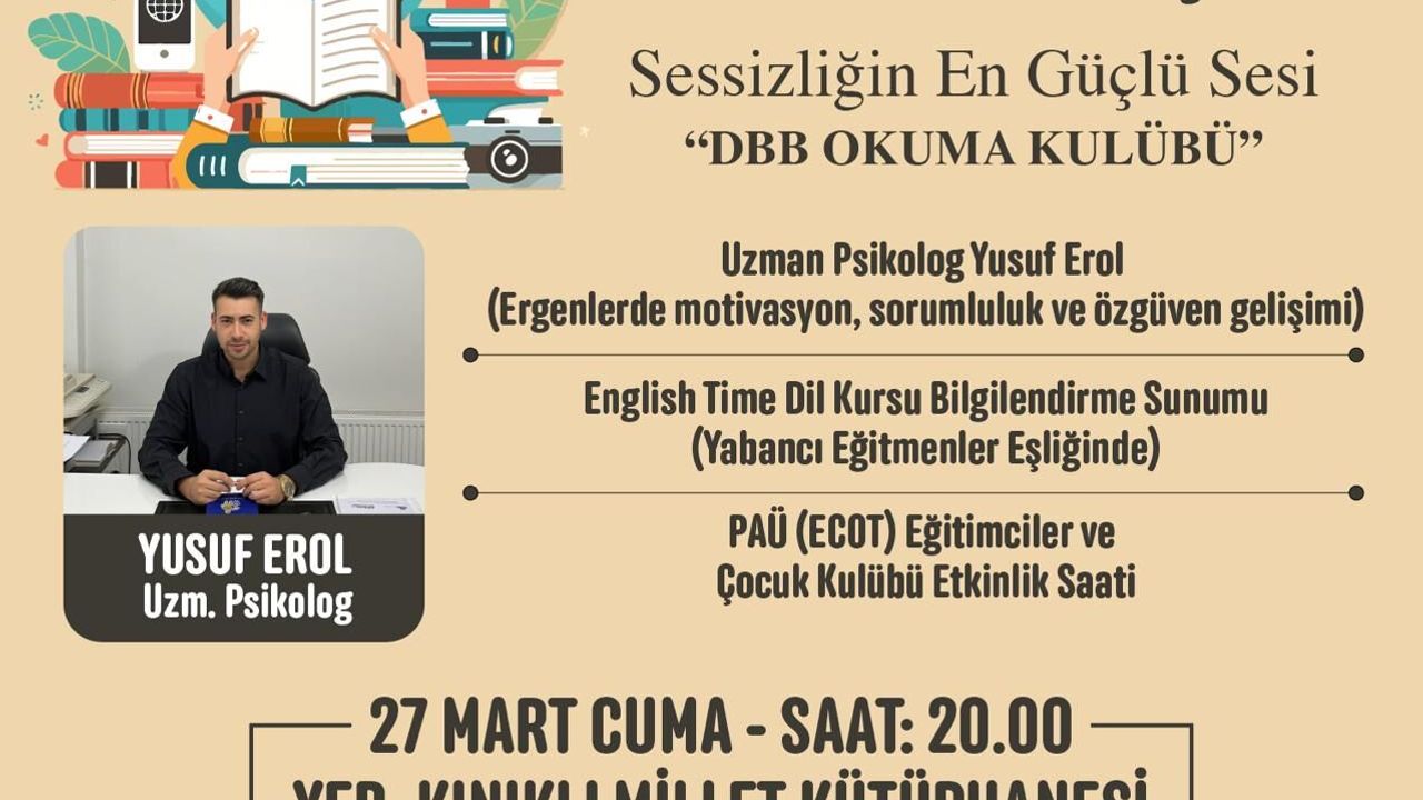 “Bir kitap açılır, bir dünya başlar” mottosuyla düzenlenen programda, katılımcılara hem kişisel gelişim hem de eğitim alanında zengin içerikler sunulacak. Etkinliğin ana konuşmacısı, Uzman Psikolog Yusuf Erol olacak. Erol, özellikle ergenlerde motivasyon, sorumluluk bilinci ve özgüven gelişimi üzerine önemli bilgiler paylaşacak. Program kapsamında ayrıca dil eğitimiyle ilgili bilgilendirme sunumu gerçekleştirilecek, yabancı eğitmenler eşliğinde dil öğrenme süreçlerine dair detaylar aktarılacak. Bunun yanı sıra Pamukkale Üniversitesi ECOT iş birliğiyle çocuklara yönelik etkinlik saati de düzenlenecek. Kültür, eğitim ve sosyal gelişimi bir araya getiren ücretsiz etkinliğe tüm vatandaşların davetli olduğu ifade edildi.