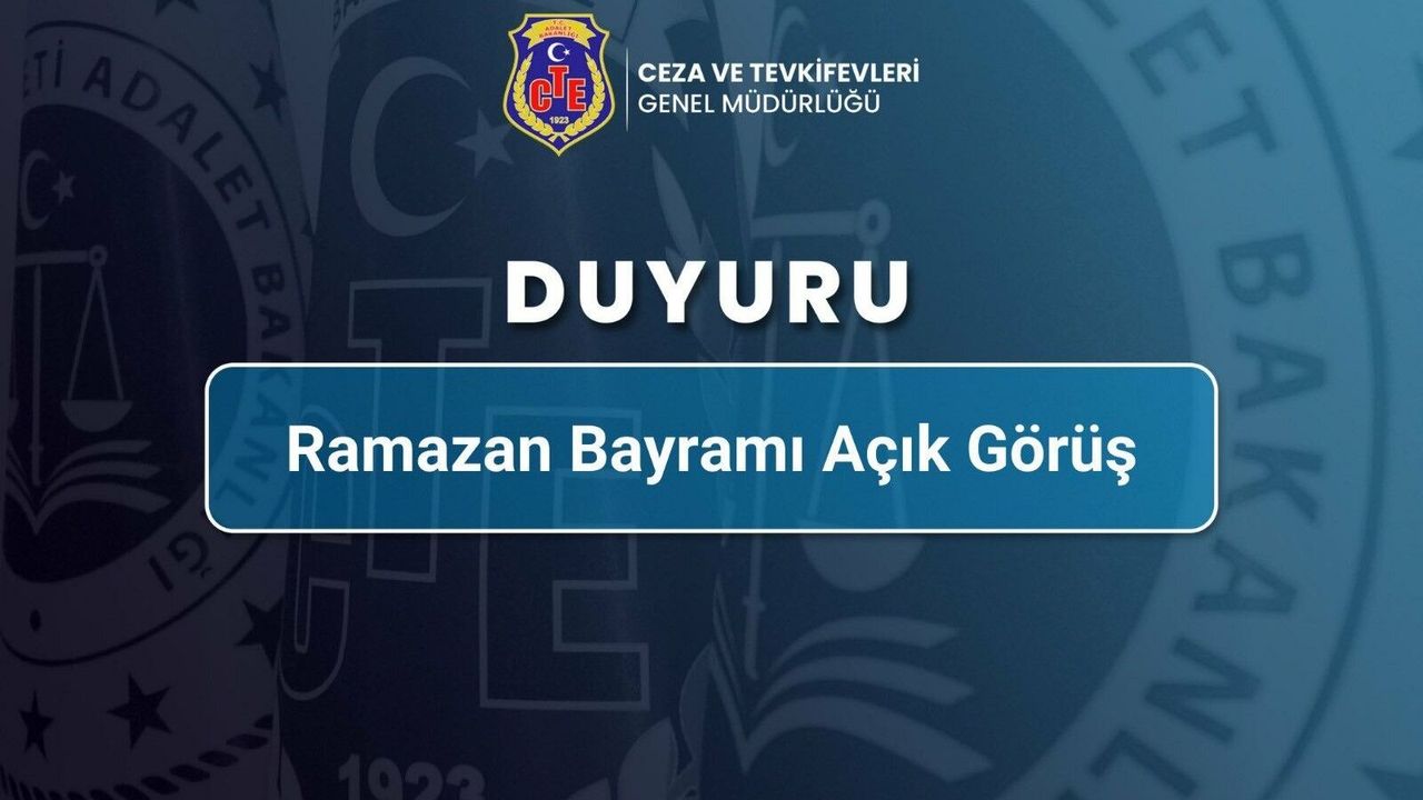Ceza ve Tevkifevleri Genel Müdürlüğü’nden yapılan açıklamada, ceza infaz kurumlarında bulunanlara Ramazan Bayramı dolayısıyla 16 - 22 Mart tarihleri arasında açık görüş izni verileceği bildirildi.