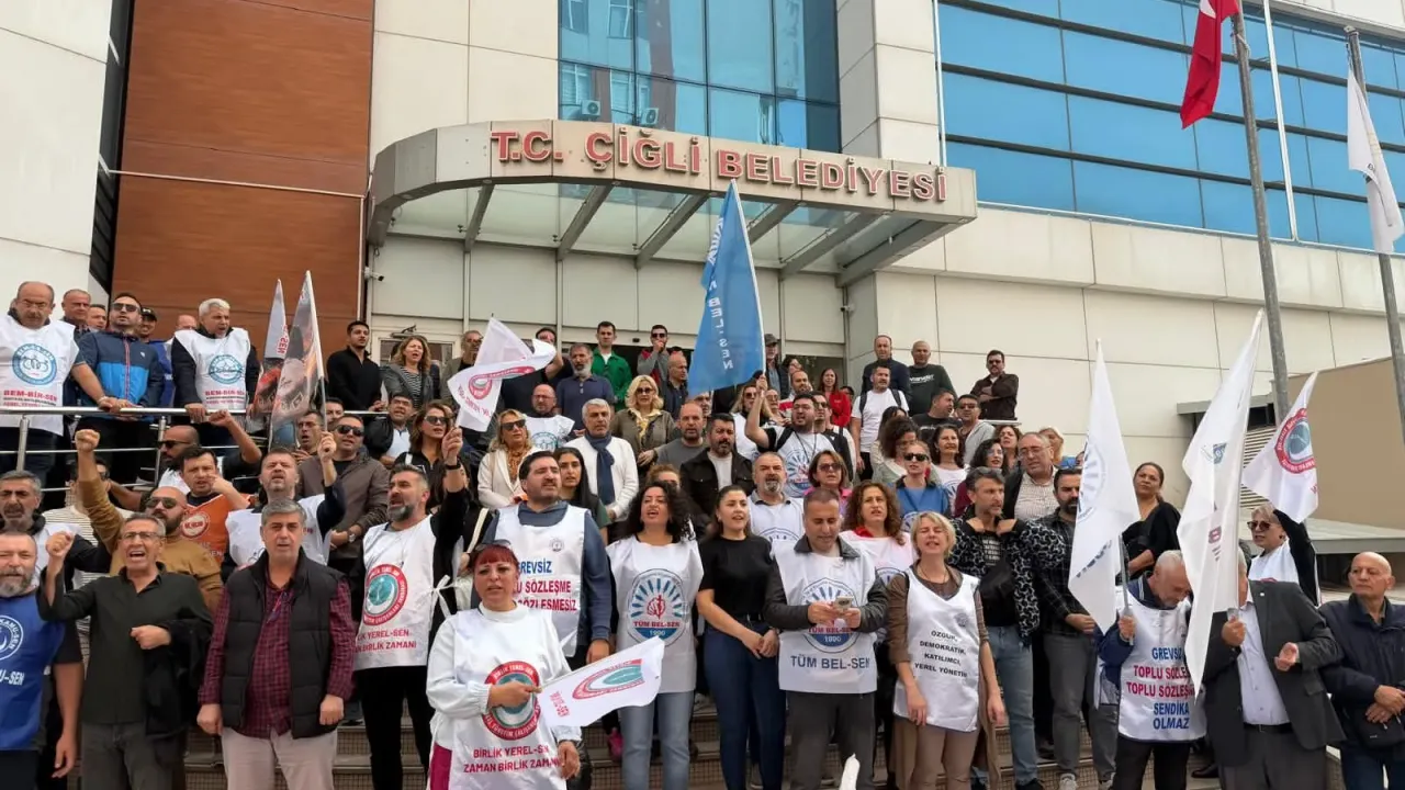 Belediye binası önünde toplanan memurlar, “Borçlarınızın faturasını emekçiye kesemezsiniz” sloganlarıyla belediye yönetimini protesto etti. Eylem sırasında okunan basın açıklamasında, Çiğli Belediyesi’nin mali sıkıntıları gerekçe göstererek çalışanların haklarını gasp ettiği öne sürüldü.