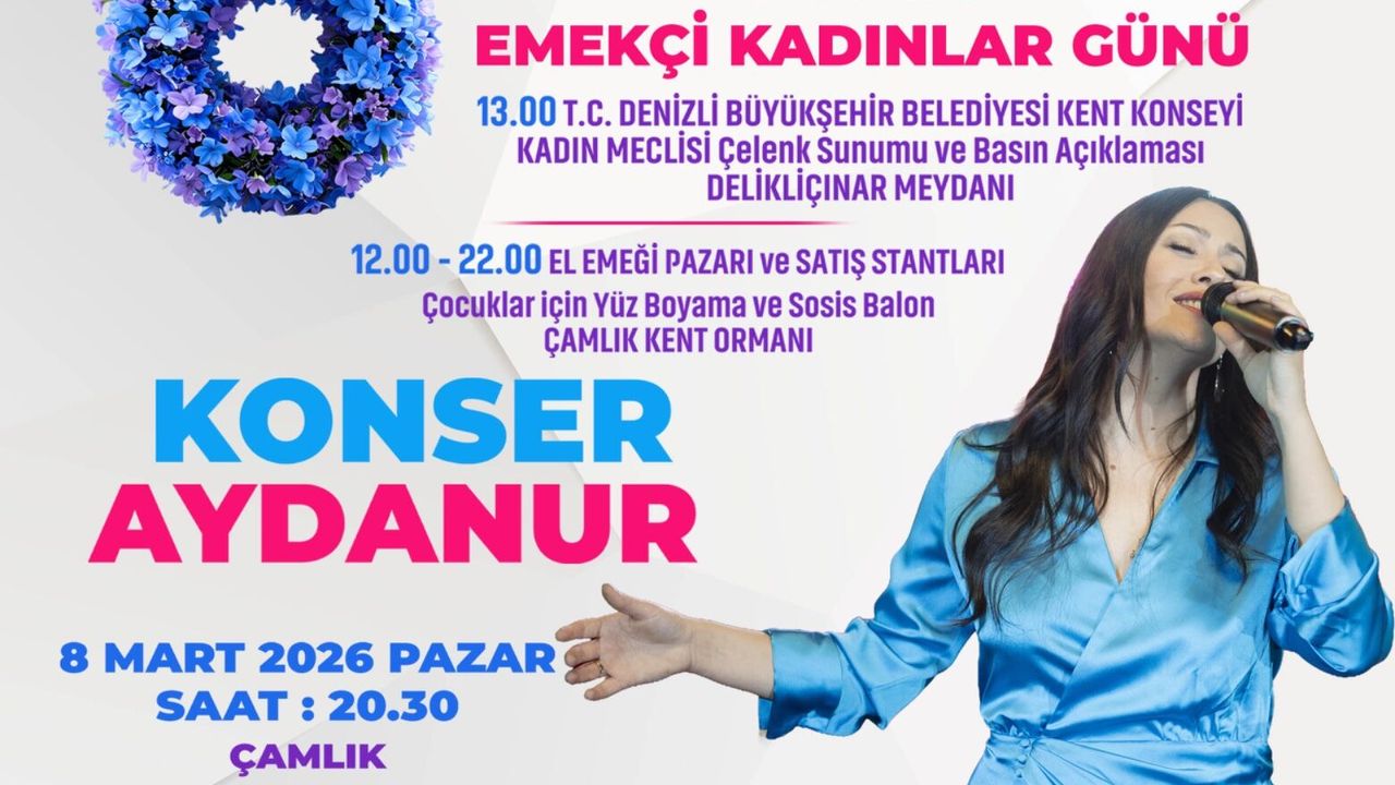 8 Mart Dünya Emekçi Kadınlar Günü programı, saat 20.30’da Çamlık Kent Ormanı’nda gerçekleştirilecek Aydanur konseriyle sona erecek. Denizli Büyükşehir Belediyesi Kent Konseyi Kadın Meclisi tarafından hazırlanan 8 Mart Dünya Emekçi Kadınlar Günü programına başta kadınlar olmak üzere tüm Denizlililer davet edilirken, etkinliklerin kadın emeği ve dayanışmasına dikkat çekmesi hedefleniyor.