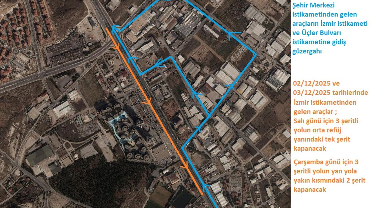 Şehir merkezinden İzmir istikametine gidecek araçlar, Menderes Bulvarı üzerinden Bozburun Caddesi’ne bağlanarak, 7040 Sokak ve Ahmet Nuri Erikoğlu Caddesi güzergâhını kullanıp yeniden Menderes Bulvarı’na ulaşabilecek.