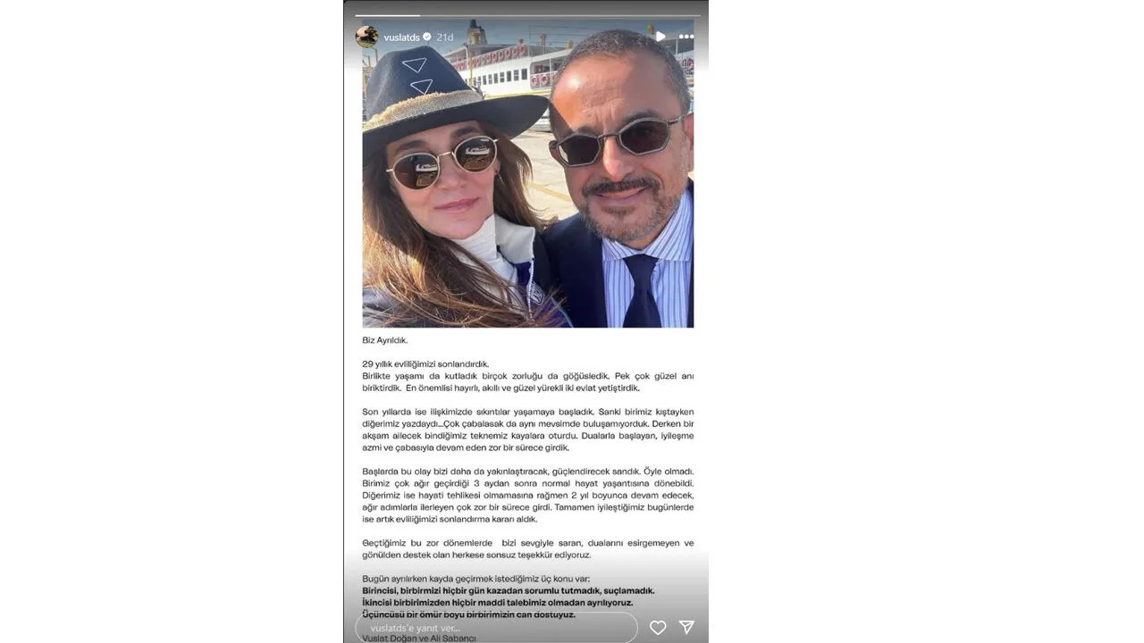Ayrılıklarını bir fotoğrafla duyuran Sabancı ve Doğan, şu açıklamayı yaptı: