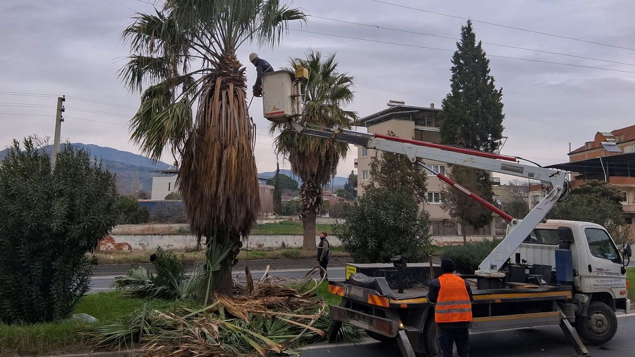 Efeler Belediyesi Park ve Bahçeler Müdürlüğü ekipleri, çalışmalar kapsamında; uzayarak elektrik tellerine temas eden ve risk oluşturan ağaçları budadı.