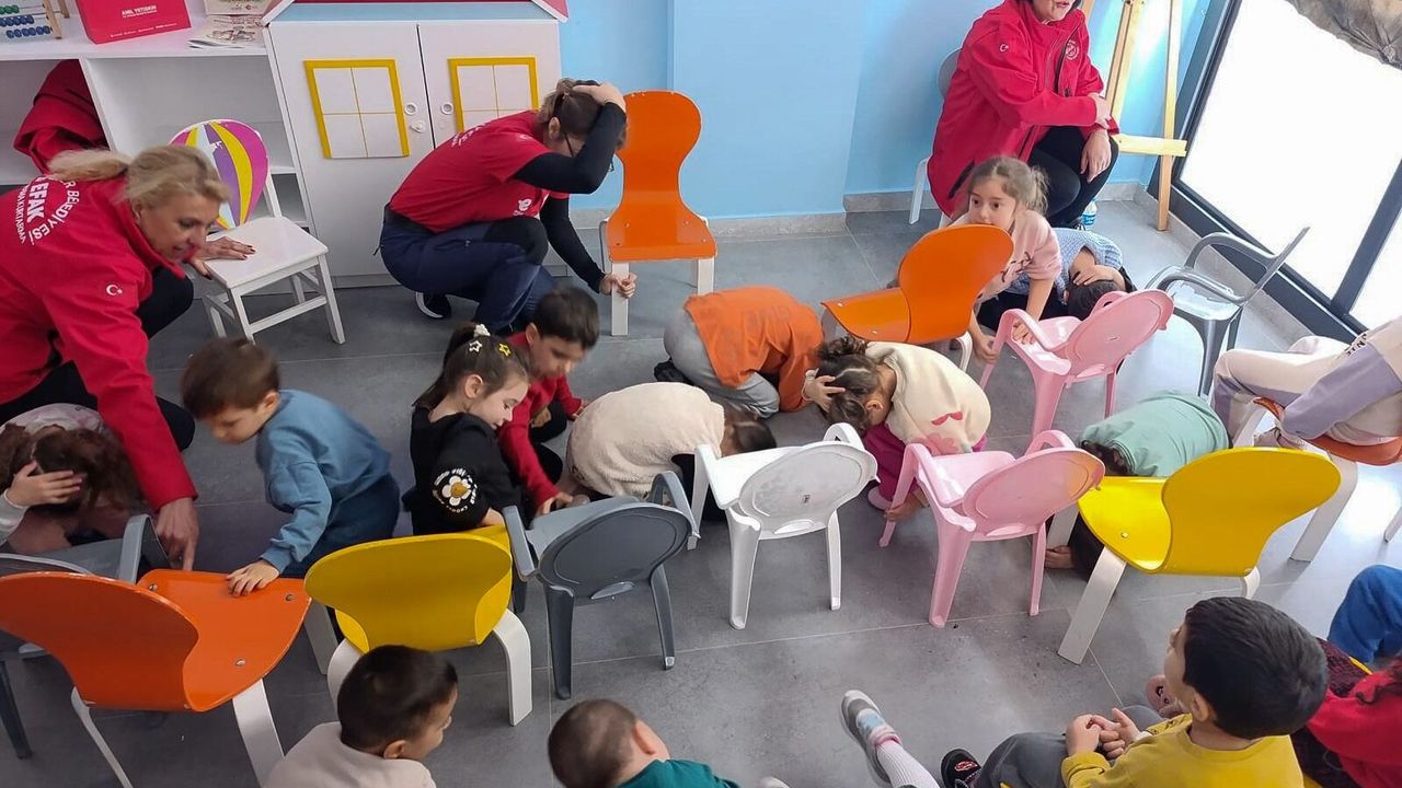 Çocuklar, afet anında “çök-kapan-tutun” hareketini nasıl yapacaklarını öğrenirken, güvenli tahliye süreçlerini de uygulamalı tatbikatlarla deneyimledi. Eğitimin her aşaması, çocukların yaş gruplarına uygun, sade ve anlaşılır bir dille gerçekleştirildi.