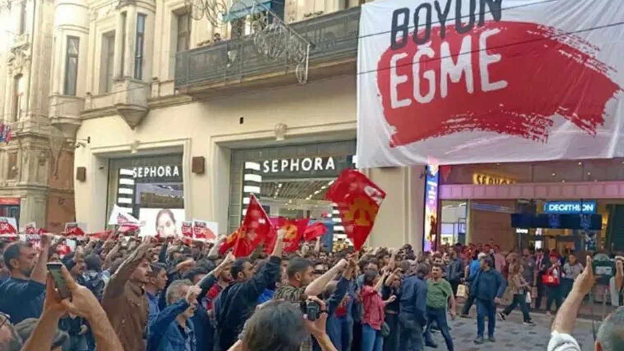Milli Eğitim Bakanlığı’na yürümek isteyen on binlerce öğretmen, sık sık “Şiddete karşı omuz omuza” ve “Yusuf Tekin istifa” sloganları attı. Ancak yürüyüş, polis tarafından kurulan barikatlarla engellendi. Eğitimciler, demokratik haklarını kullanarak Bakanlık binasına ulaşmak isterken güvenlik güçleri geçişe izin vermedi.