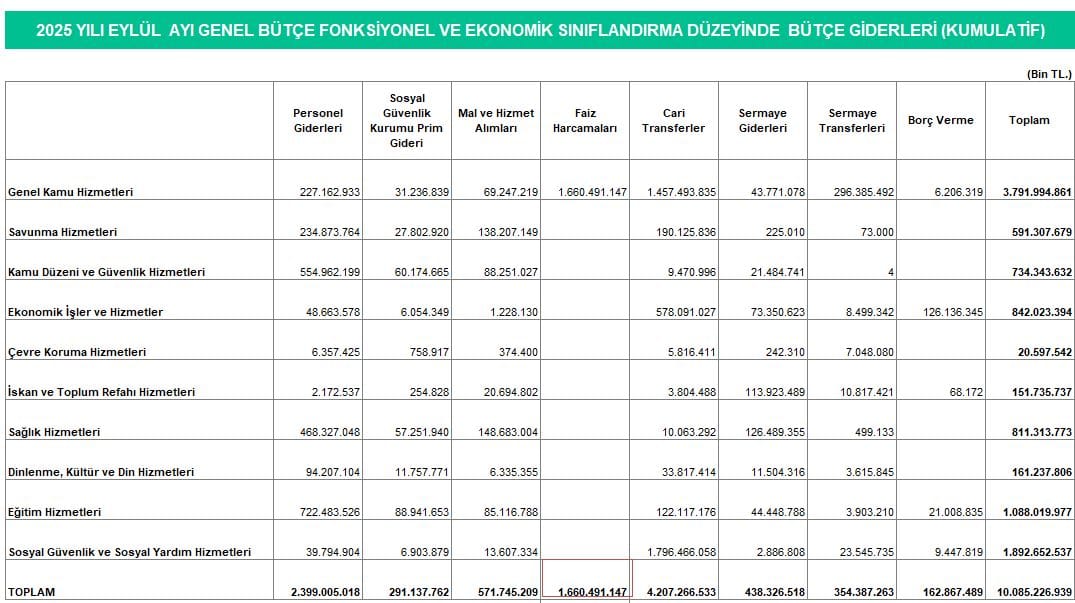 2025 yılı için öngörülen toplam 14,7 trilyon TL’lik ödeneğin yüzde 9’u eylül ayında kullanıldı.