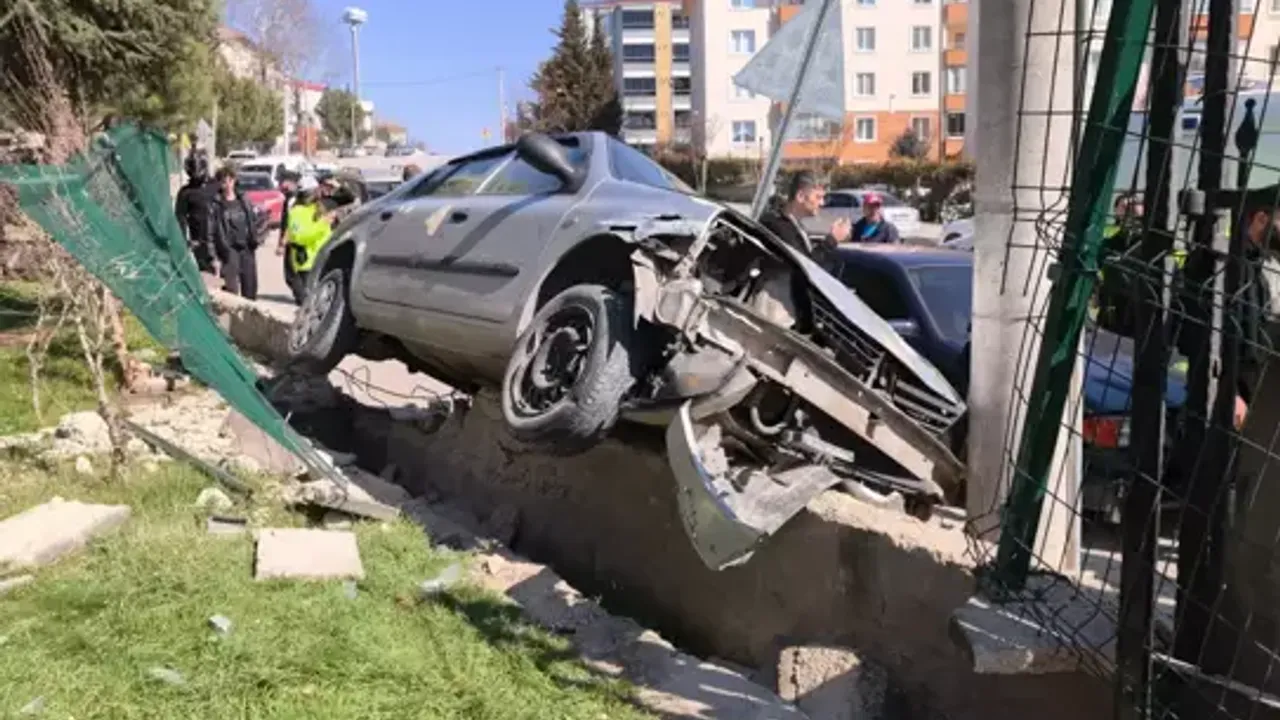 Otomobil, yayaları altına aldıktan sonra bir sitenin duvarına ve direğe çarparak durdu.