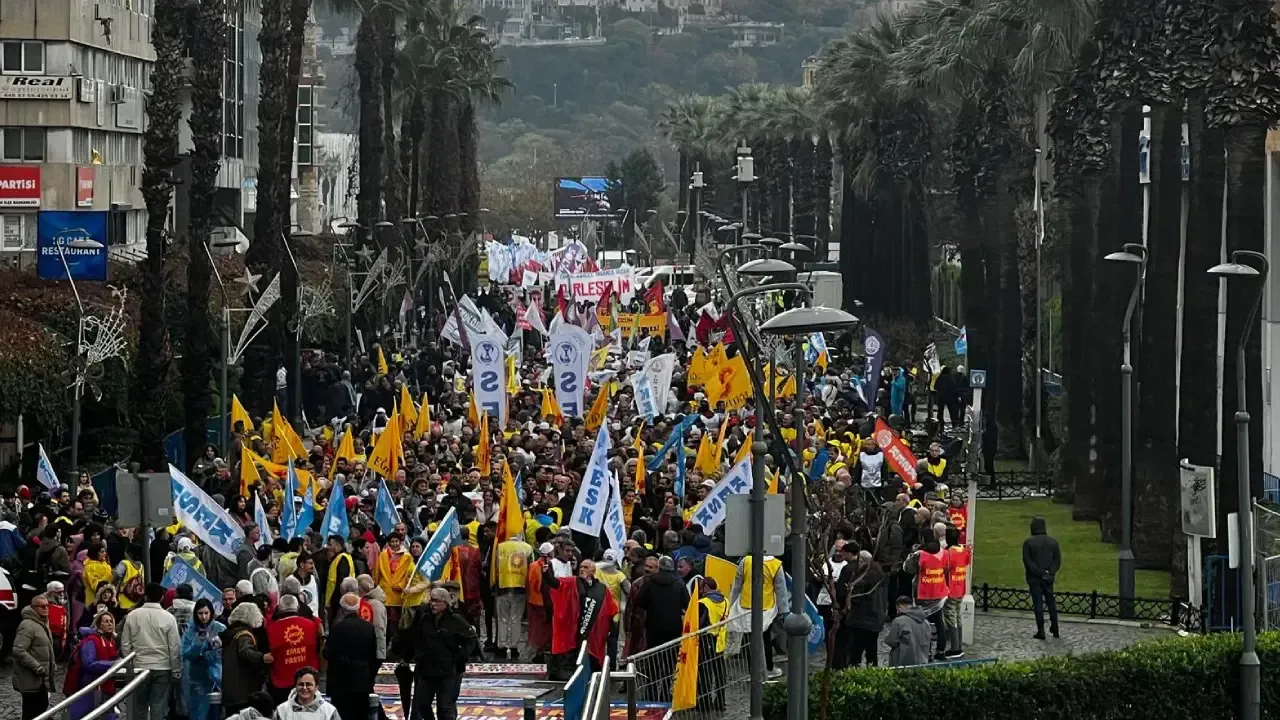 Kamu Emekçileri Sendikaları Konfederasyonu’nun (KESK) çağrısıyla Türk-İş, TMMOB, İzmir Barosu ve İzmir Tabip Odası’nın da katılımıyla İzmir’de “Geçinemiyoruz” mitingi düzenlendi.