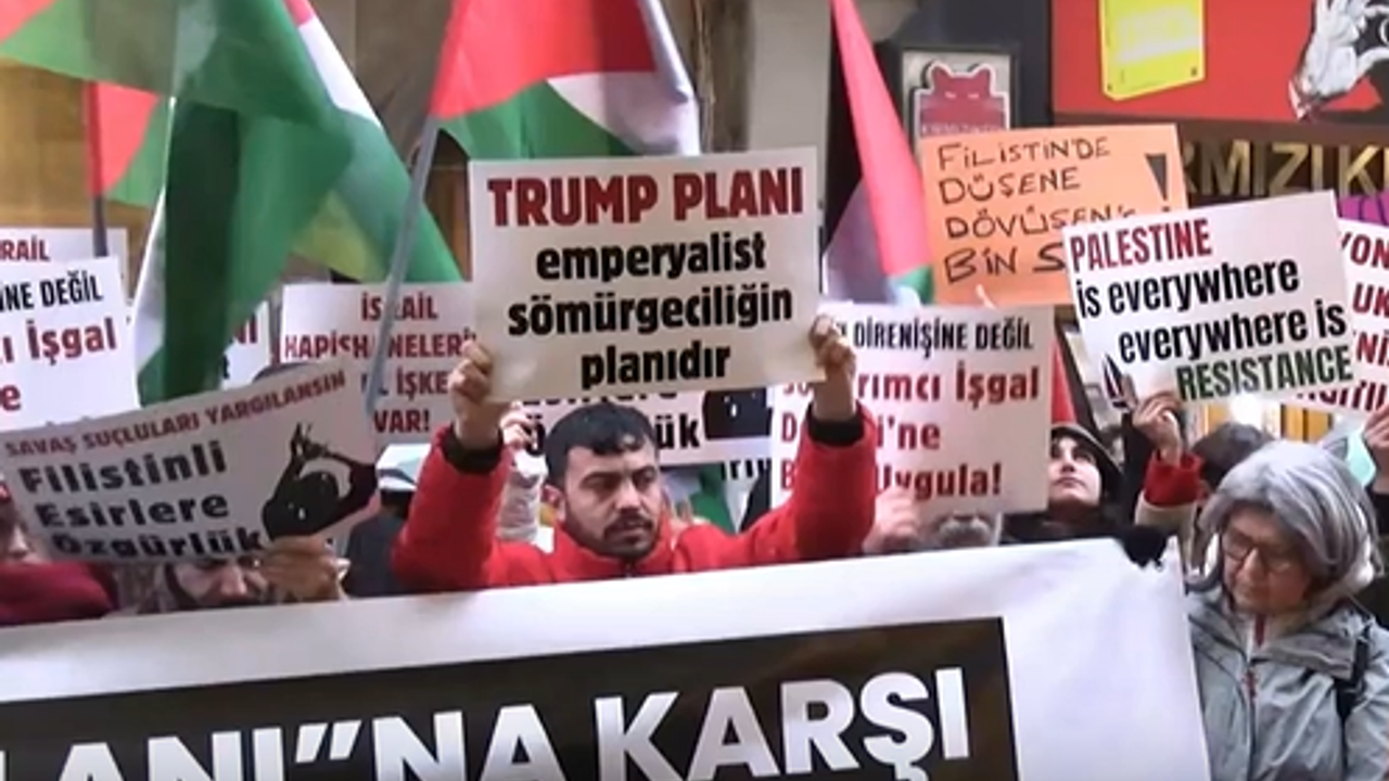 "Türkiye’de iktidar, ABD’nin Gazze'yi kontrol etme planını destekliyor ve Filistin halkının iradesini ve tarihsel haklarını yok sayanlar arasında yer alıyor" ifadelerine yer verildi.