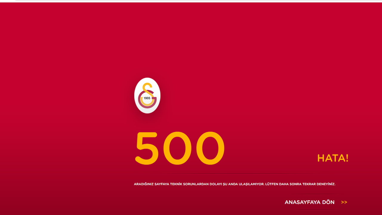Galatasaray’ın resmi sitesi galatasaray.org’a girmek isteyen kullanıcılar “500 hatası” ile karşılaştı. Sitede şu uyarı mesajı yer aldı: