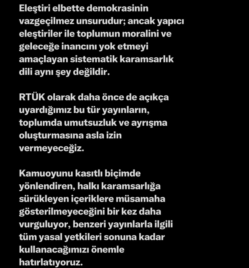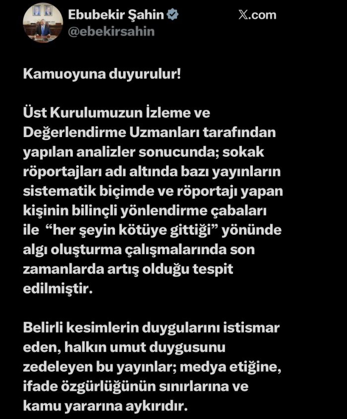 RTÜK Başkanı Ebubekir Şahin’in açıklaması ise şu şekildeydi: