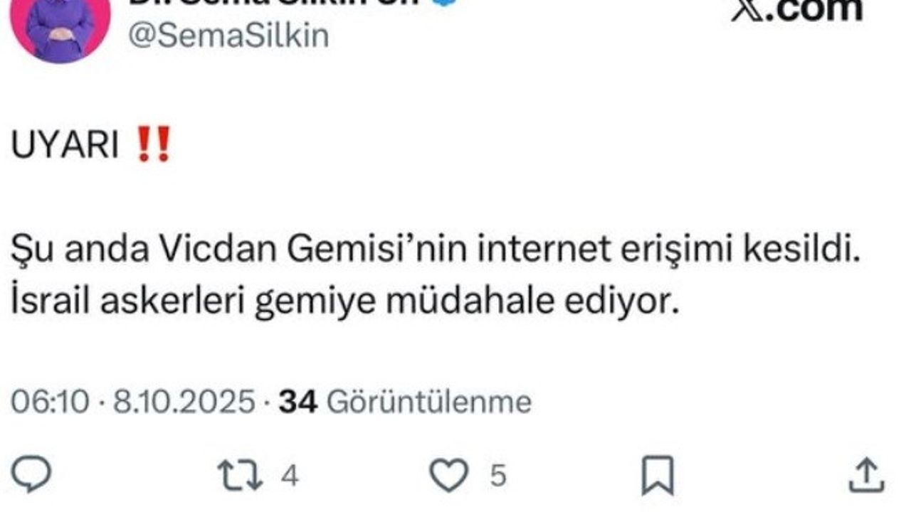Gazze’ye insani yardım ulaştırmak amacıyla Akdeniz’de yol alan Vicdan gemisine, sabah saatlerinde İsrail askerleri tarafından müdahale edildi. Gemide Denizli Milletvekili Sema Silkin Ün’ün de bulunduğu bildirildi. Müdahale öncesinde internet erişimi kesilen gemide yaşananlara ilişkin henüz resmi bir açıklama yapılmadı.