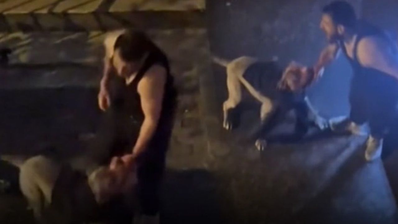 Bağırarak, çevredekilerden yardım isteyen kişi bir süre sonra kolunu köpeğinin ağzından kurtardı.