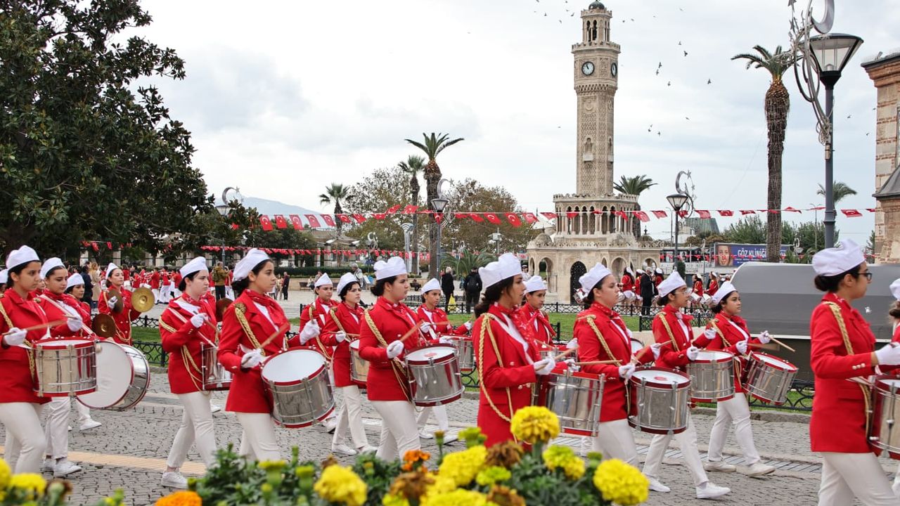 Bornova Fatih Sultan Mehmet İlkokulu, Karabağlar Limontepe Seniye Hasan Saray İlkokulu, Buca Burhan Özfatura İlkokulu, Konak Şehit İdarî Ateşe Çağlar Yücel Meslekî ve Teknik Anadolu Lisesi, Buca Sultan Alparslan Anadolu Lisesi, Karabağlar Nene Hatun Kız Meslekî ve Teknik Anadolu Lisesi ile Bayraklı Mustafa Kemal Anadolu Lisesi öğlencilerinden oluşan “Bando Takımları”, İzmir İl Millî Eğitim Müdürlüğü binasından başlayarak Konak Atatürk Meydanı’na kadar coşkulu bir yürüyüş gerçekleştirdi.