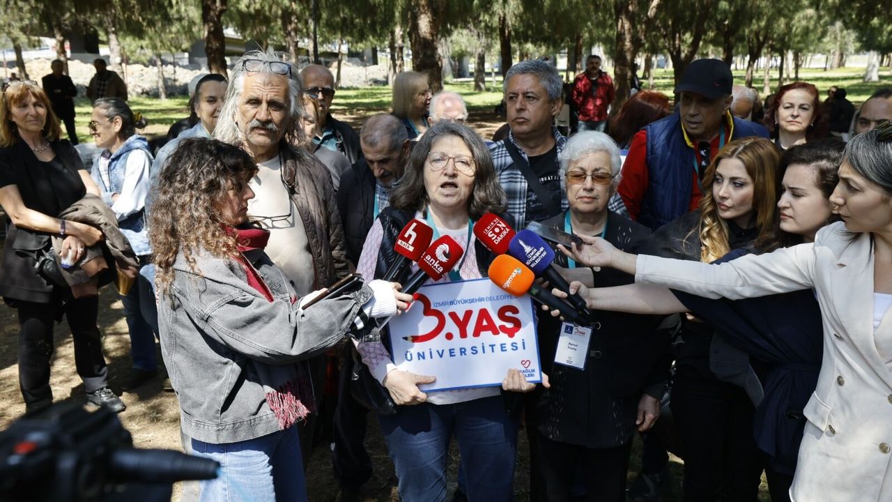 3. Yaş Üniversitesi öğrenci temsilcisi Ayşe Tetik, İzmir Büyükşehir Belediyesi'nin kendilerine çok iyi bir hizmet sunduğunu belirterek "Bizler hepimiz meslekleri elinde olup emekli olan, halkın deyimiyle 'Ununu eleyip eleğini asmış grubuz.' Ama biz elekleri asmadık. Biz bir buçuk yıldır kendimizi hayata adapte etme konusunda Meslek Fabrikası'nda ders görüyoruz. Orada binlerce genç de ders görüyor, biz de ders görüyoruz ve dershanemizin, okulumuzun el konulmasına karşı çıkıyoruz. Şu anda biz o dershanede ders görüyor olacaktık. Bize psikolojik, sosyolojik, sağlık, mutfak sanatı gibi birçok başlıkta eğitim verildi. Belli bir yaştan sonra hayattan kopmak değil, hayatın içinde olmayı öğretiyorlar. Bize güzel şeyler öğretiyorlar. Okulumuzun kapanmasını istemiyoruz. Okulumuza el konulmasını istemiyoruz" dedi.