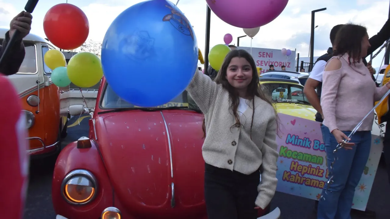 Aksaray’da yaşayan Uğur ve Tülay Öztürk çiftinin üçüncü çocuğu olan Beyza Öztürk’e, yaklaşık bir ay önce yüksek ateş şikâyetiyle başvurulan hastanede yapılan tetkiklerin ardından lenfoma teşhisi konuldu. Birinci sınıfa ara vermek zorunda kalan Beyza, İzmir Şehir Hastanesi’nde yatarak tedavi görüyor. Minik Beyza, gönüllülerin hastane bahçesinde gerçekleştirdiği balon uçurma etkinliğini babası Uğur Öztürk’ün cep telefonundan yaptığı görüntülü arama aracılığıyla takip etti.