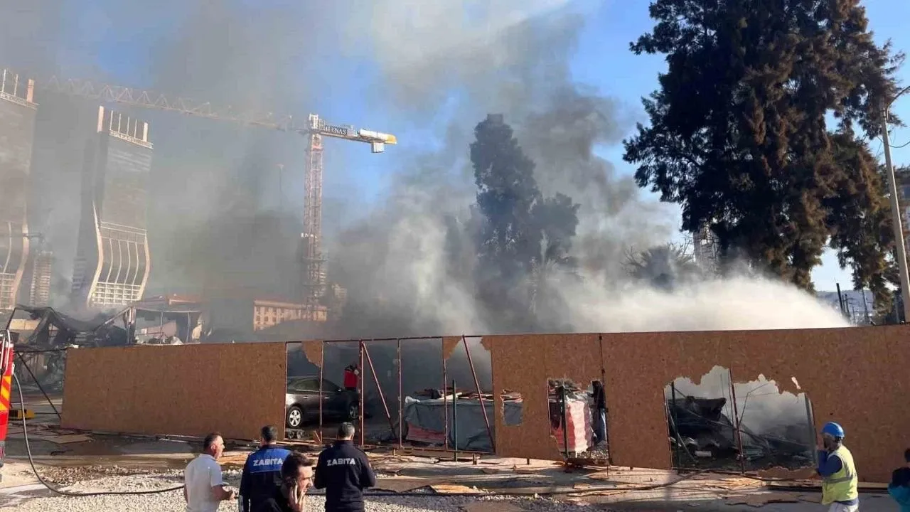 İzmir’in Bayraklı ilçesinde bir şantiyede çıkan yangın paniğe neden oldu.