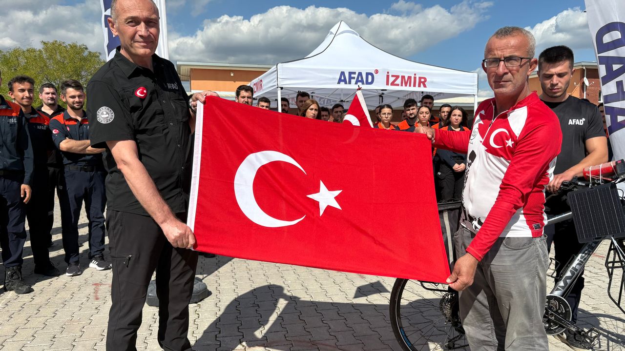47 yaşındaki Kotluk, yaklaşık 20 yıldır Türkiye’yi bisikletiyle geziyor. Bu kez, bin 350 kilometrelik bir parkuru kat ederek İzmir İl Afet ve Acil Durum Müdürlüğü’nden aldığı Türk bayrağını Kahramanmaraş Valiliği’ne ulaştırmayı hedefliyor. Yolculuğu boyunca İzmir, Manisa, Uşak, Afyonkarahisar, Konya, Aksaray, Nevşehir ve Kayseri illerinden geçecek olan Kotluk, farkındalık oluşturmak için pedal çevirecek.