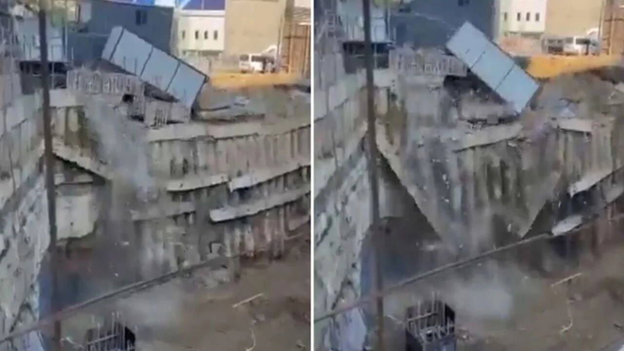 Çökme anı çevrede bulunan kişiler tarafından cep telefonu kamerasıyla kaydedildi.