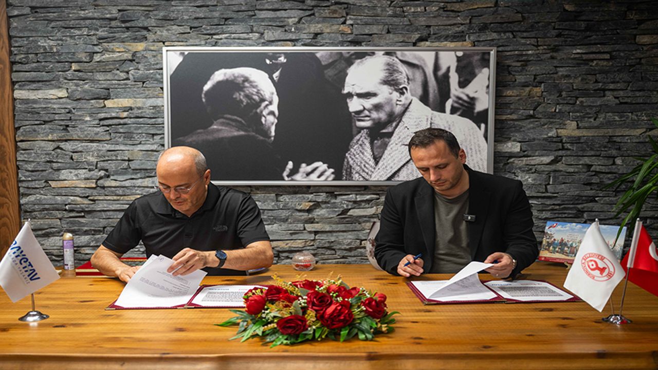 Protokole Bornova Belediye Başkanı Ömer Eşki ile BAYETAV Genel Sekreteri Dr. Bülent Şık imza attı.