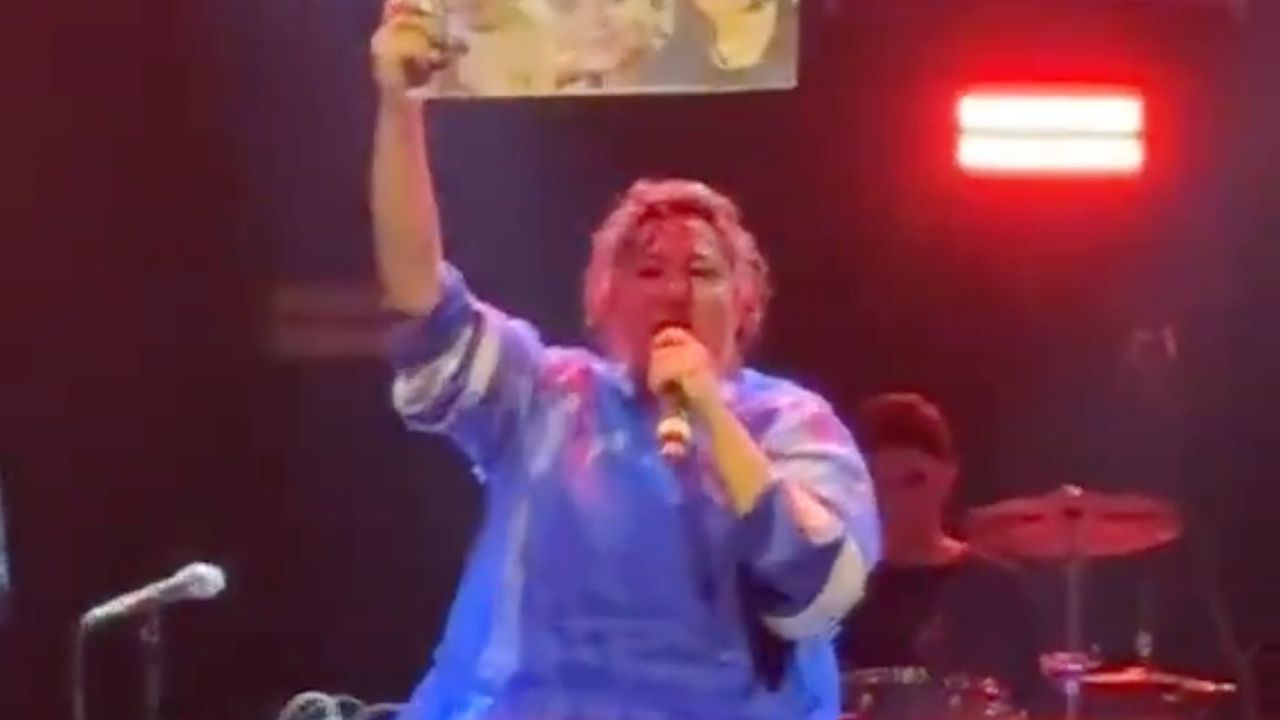 Seyircilerden aldığı pankartı sahneye taşıyan ünlü şarkıcının bu hareketine, salondaki seyirciler, alkışlar eşliğinde "Helal olsun!" diyerek karşılık verdi.