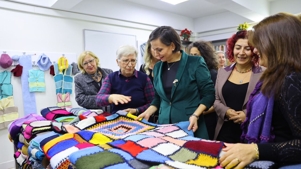 Yaş Alma Merkezi'ni Karabağlar Belediye Başkanı Helil Kınay da ziyaret ederek çalışmalara katılan kadınlar, mahalle muhtarı ve yetkililer ile bir araya geldi.