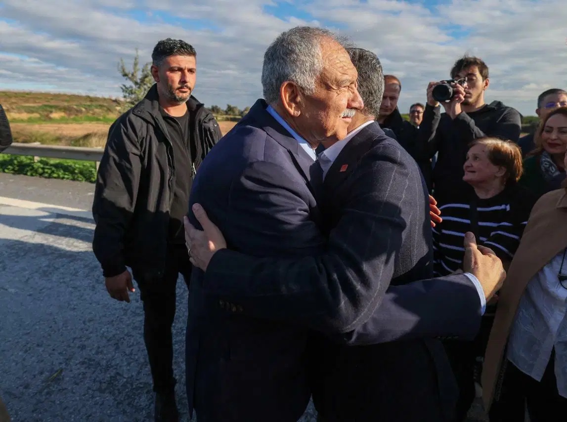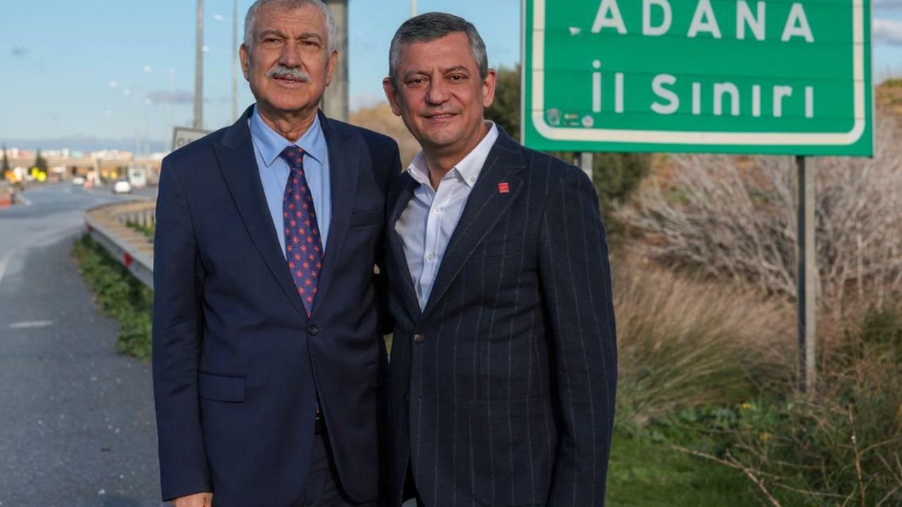 Tahliye edilen Adana Büyükşehir Belediye Başkanı Zeydan Karalar ile yurttaşlarla bir araya gelmek üzere Adana’ya giden Özel’i, il sınırında Zeydan Karalar karşıladı.