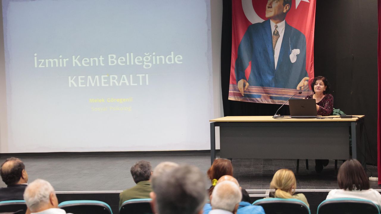 Alsancak'taki Türkan Saylan Kültür Merkezi'nde düzenlenen söyleşide, Sosyal Psikolog Prof. Dr. Melek Göregenli konuşmacı olarak yer aldı. Kent kimliğinin oluşumunda mekanın ve toplumsal hafızanın rolünün masaya yatırıldığı söyleşide, kültürel mirasın geleceğe aktarılması ve Kemeraltı'nın bu süreçteki yerine vurgu yapıldı.