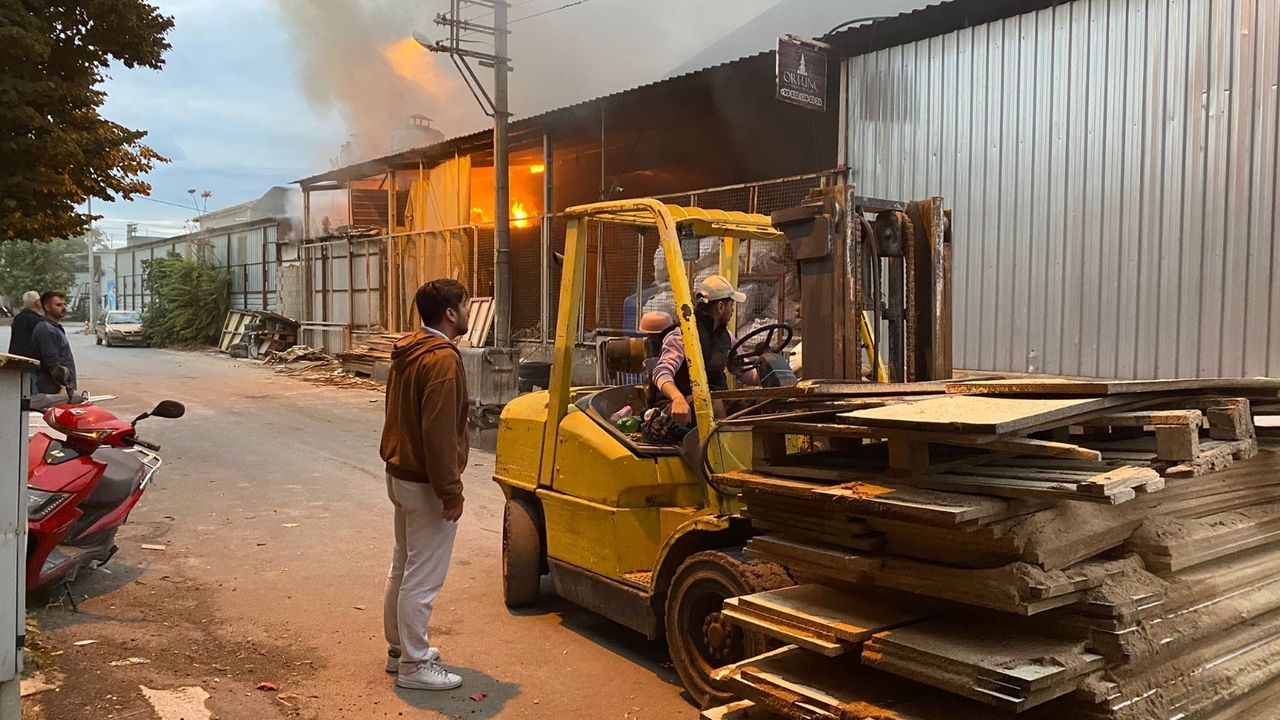 Denizli’nin Merkezefendi ilçesi Sümer Mahallesi’nde, 68 Sokak üzerinde bulunan bir kereste deposunda henüz belirlenemeyen nedenle yangın çıktı. Yangın, iş yeri sahiplerinin işyerini kapatmasının ardından başlamasıyla olası bir faciayı önledi.