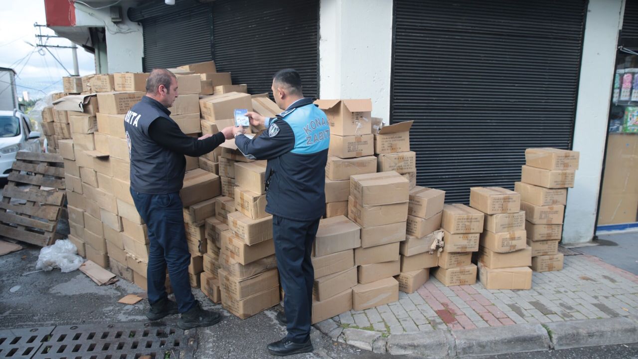 Konak Belediyesi Zabıta Müdürlüğü, ihbar üzerine denetim gerçekleştirdiği Millet Mahallesi'ndeki bir işletmede, son kullanma tarihi geçmiş kolilerce ürün tespit etti.