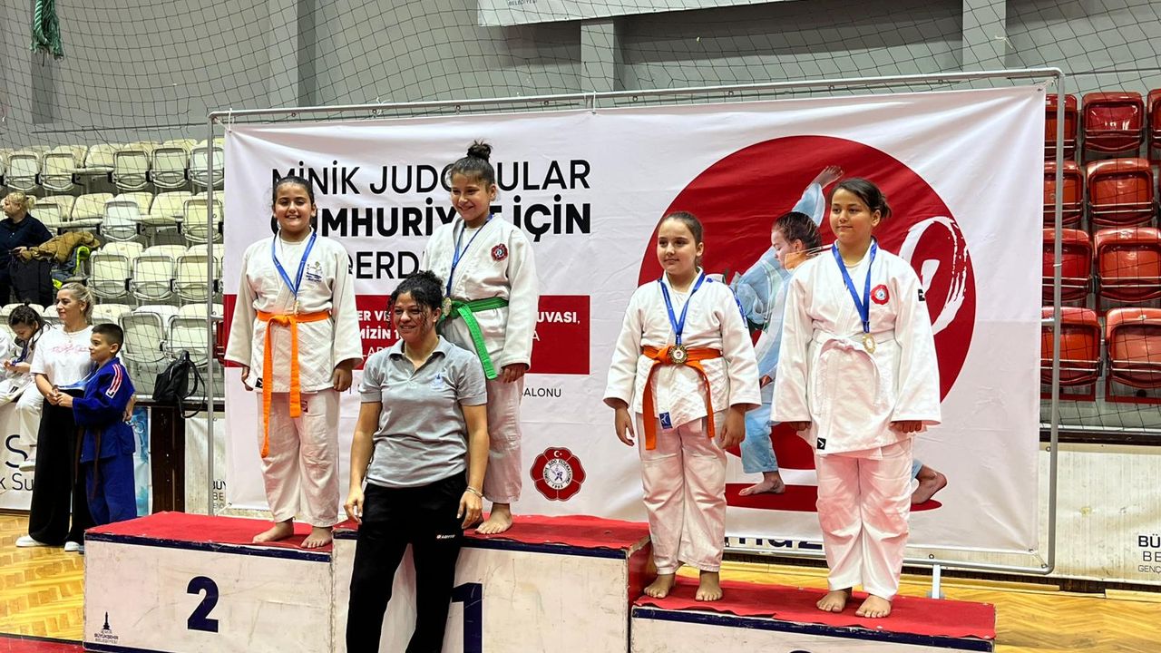 Azim ve performanslarıyla göz dolduran minik sporcular, 10 kulüpten yaklaşık 200 minik judocunun yarıştığı turnuvadan biri altın olmak üzere 7 madalyayla ayrıldı.