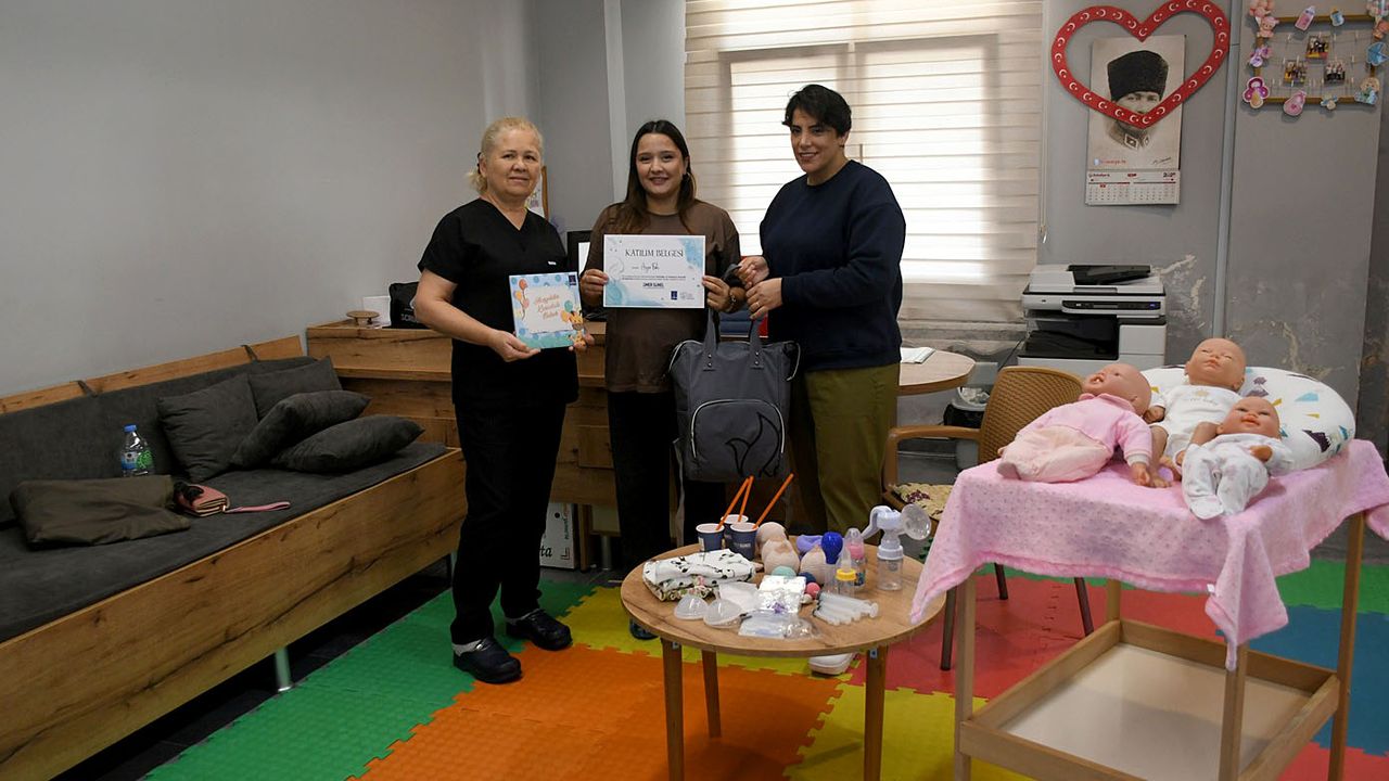 Kuşadası Belediyesi tarafından İkiçeşmelik Mahallesi'nde kente kazandırılan 'Anne Baba Çocuk Merkezi', anne adaylarına ücretsiz verdiği eğitimlerle destek oluyor.