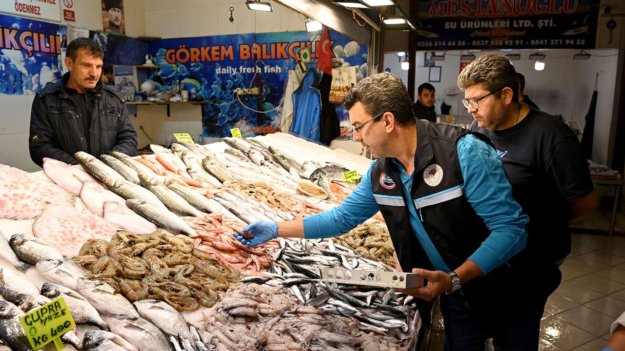 Denetimde, satışa sunulan balıkların tazeliği ve halk sağlığı açısından uygunluğuna bakıldı. Tezgâhlardaki balıkların boyları tek tek ölçüldü.