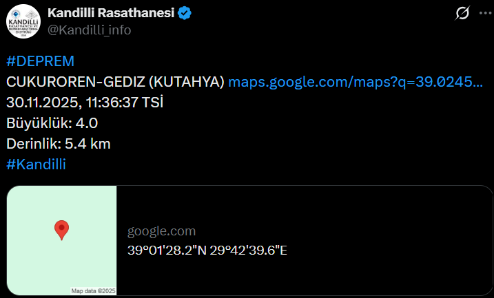 Kütahya'nın Gediz ilçesindeki depreme ilişkin Kandilli Rasathanesi'den de açıklama geldi.