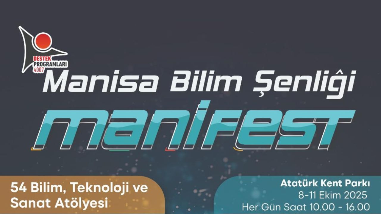 Bilim Yunusemre Bilim Merkezi tarafından düzenlenen “MANİFEST Bilim Şenliği”, 8-11 Ekim 2025 tarihleri arasında Atatürk Kent Parkı’nda gerçekleştirilecek. Şenlikte 54 atölye ile öğrenciler ve gençler, bilimin eğlenceli dünyasıyla buluşacak.