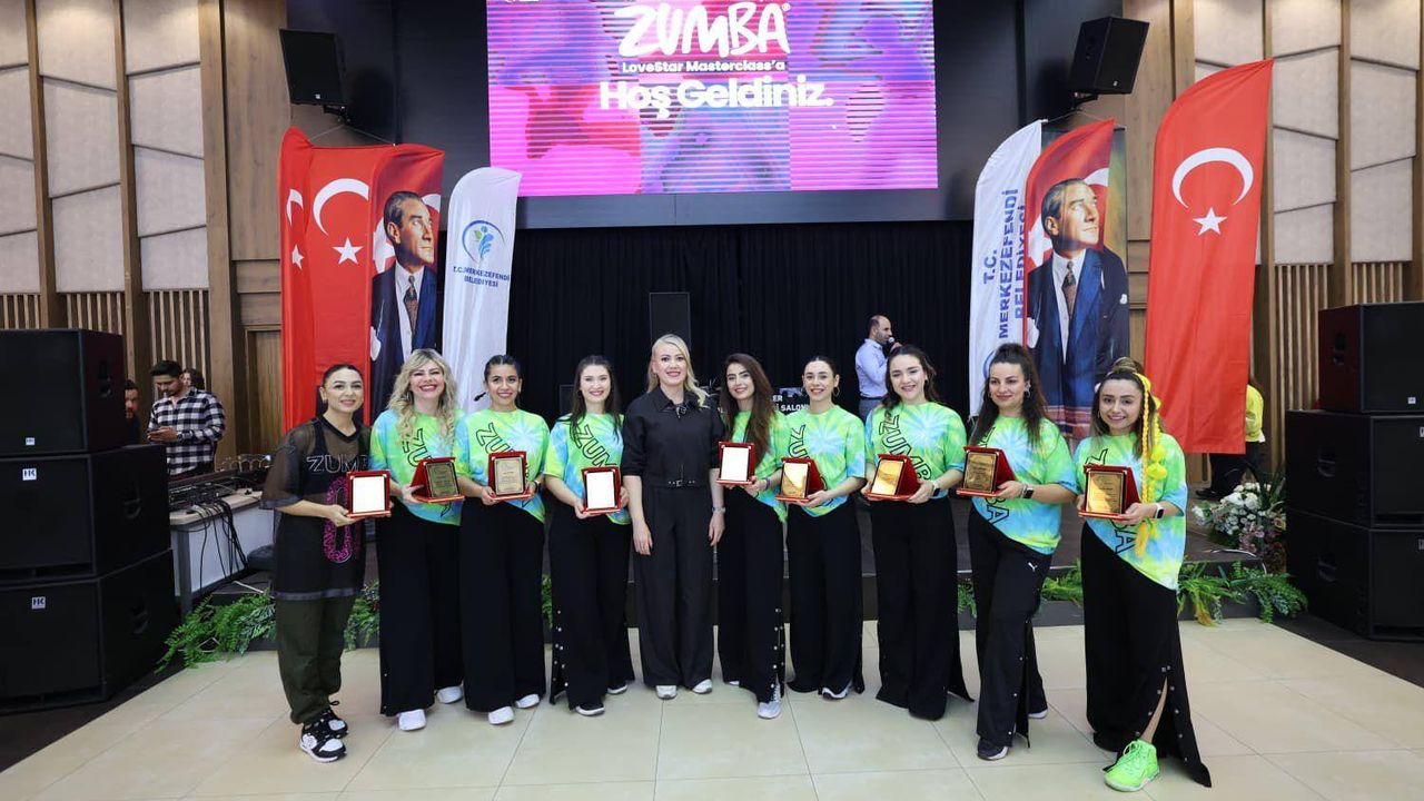 Dördüncü kez düzenlenen ‘Zumba LoveStar Masterclass’ta Merkezefendi Belediye Başkanı Şeniz Doğan, Kadın Çocuk Yaşam Merkezleri’nde eğitim alan kursiyerler ve etkinliğe katılan tüm kadınlar müziğin ritmiyle spor yaptı.