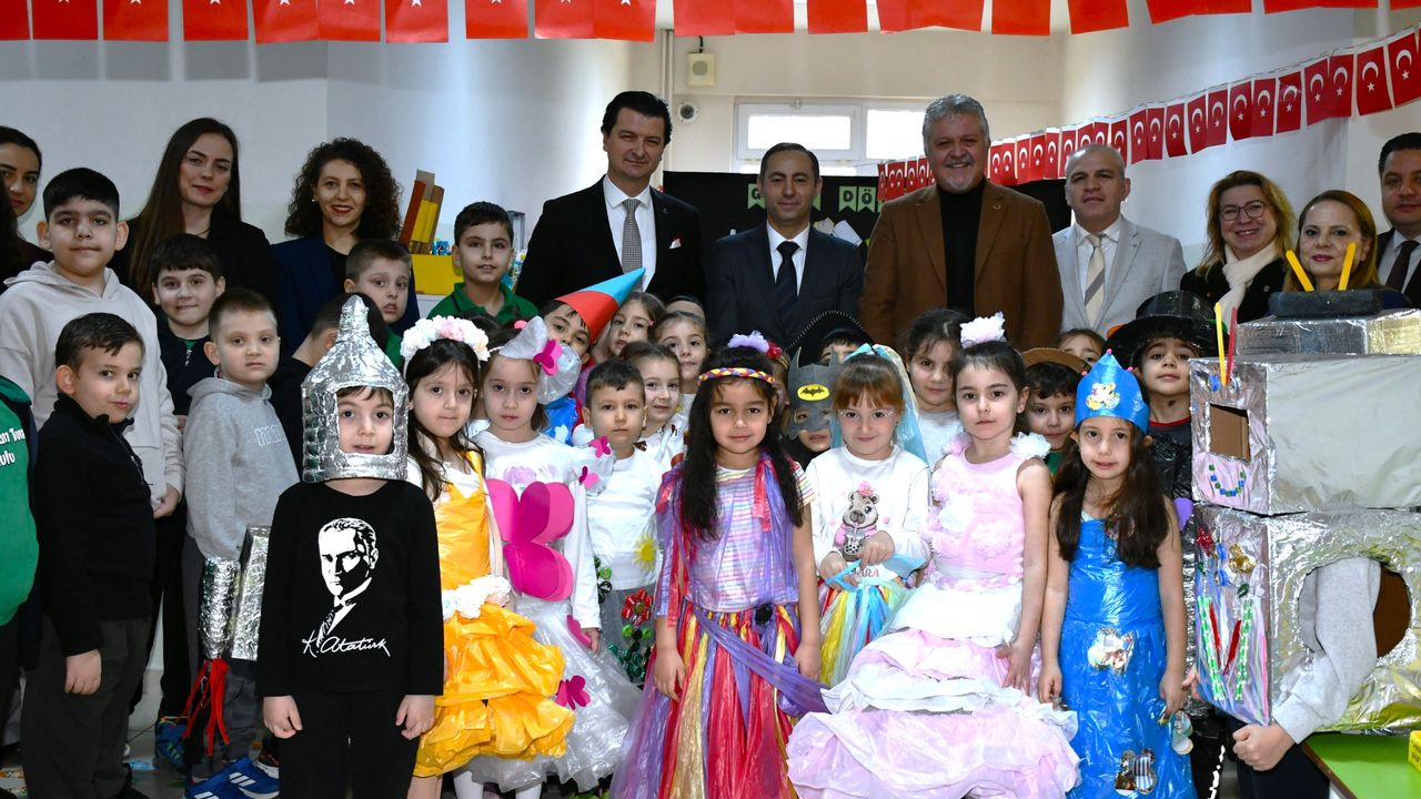 Anasınıfı öğrencilerinin atıklardan üretip yeniden kullanıma kazandırdıkları ürünlerden oluşan sergiyi gezen protokol üyeleri, daha sonra ‘Bilgeç ve Egemen Abi’ kukla gösterisini izledi.
