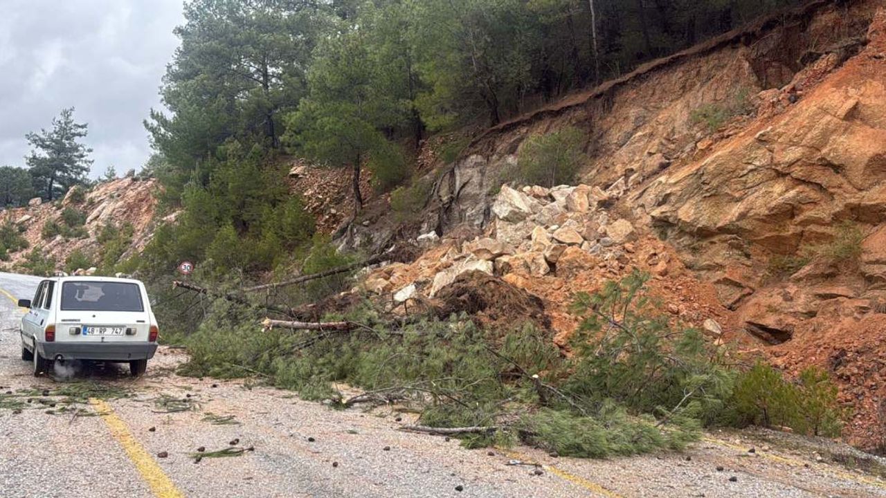Bölgede son günlerde etkili olan sağanak yağışlar, Olukbaşı Mahallesi mevkisinde zeminin yumuşamasına yol açtı. Yumuşayan toprak nedeniyle yamaçtan kopan dev taş ve toprak kütleleri karayoluna düştü.