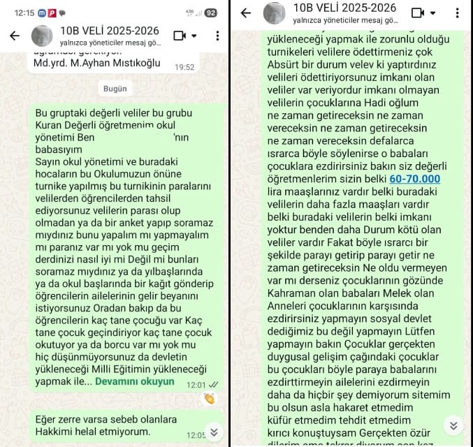 Veli WhatsApp grubunda olaya tepki gösteren baba, okul yönetimine hitaben yazdığı isyan dolu mesajında, bu uygulamanın eğitimde fırsat eşitliğini yok ettiğini vurguladı.