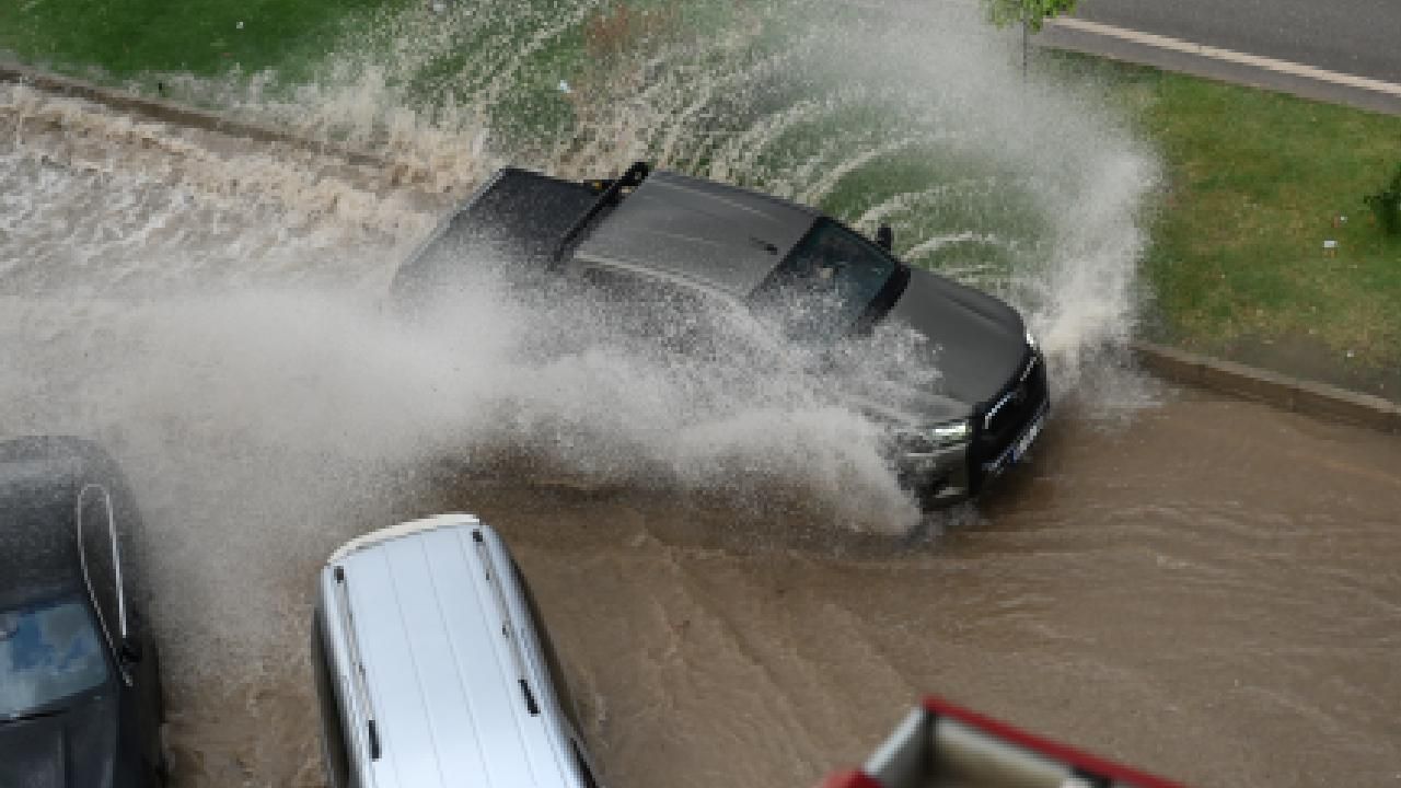 Osmaniye'nin Kadirli ilçesinde sağanak nedeniyle cadde ve sokaklarda su birikintileri oluştu, bazı binaların zemin katlarındaki iş yerlerini su bastı.